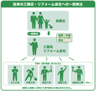 分離発注方式による家造りは、コスト(建築費用)を抑える事が1番の目的では御座いません。 一括発注による家造り(工務店・ハウスメーカー・リフォーム会社)の時に提示……
