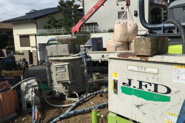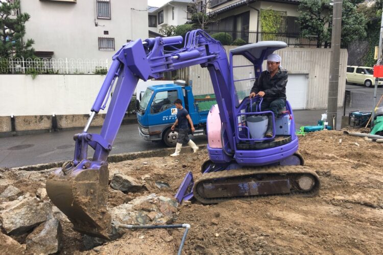 地鎮祭・契約会を終え、いよいよ本格的に工事が始まりました。 基礎工事に取り掛る前に、地盤改良工事を行いました。 地盤改良とは、軟弱地盤や隣地と高低差がある敷……