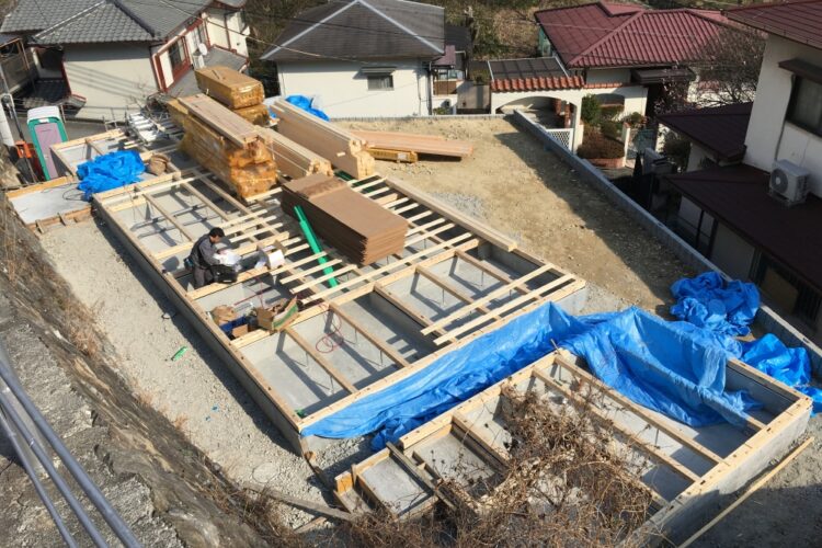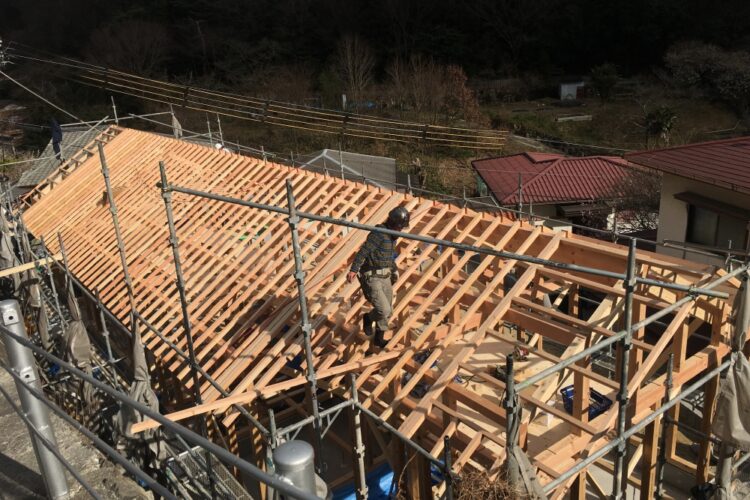 兵庫県宝塚市ふじガ丘と兵庫県川西市満願寺町にまたがって建つ宝川の平屋。 3月11日に上棟致しました! 大工工事は順調に進んでいます。 ……