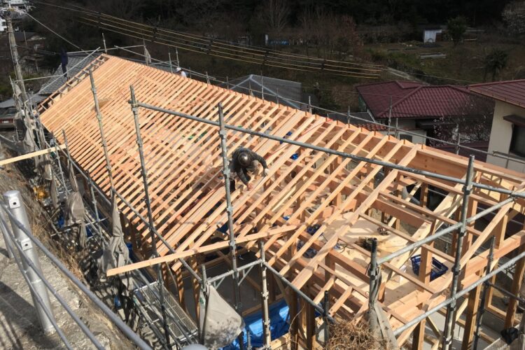 箕面里山平屋の家【大工工事-上棟、屋根工事】