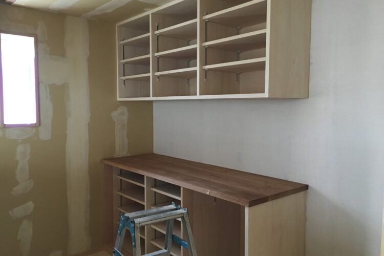 だいぶ更新をサボってしまいました・・・。 ブログの更新はサボりましたが、現場は順調に進んでいきました。 大工工事は、造作家具を製作してひとまず終了です。 こち……