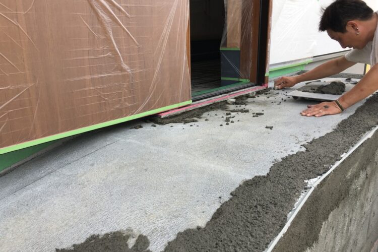 このお家は、外部への出入口が玄関ドアの1箇所しか無いので、ある程度内部の工事が完了してからポーチ・スロープの製作に取り掛かりました。 ポーチ・スロープの製作は……