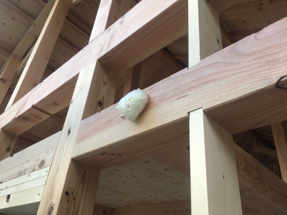 熱損失・金物の結露を防ぐ為、外壁部分の羽子板ボルトには全て、ウレタン断熱を施します。