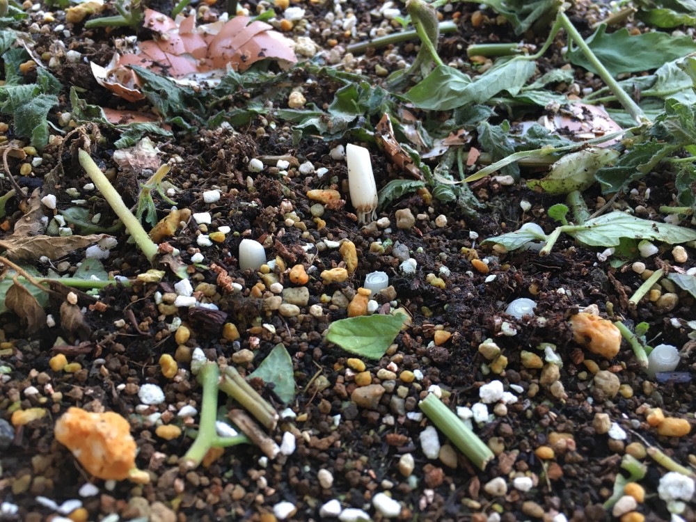 最近は、昼食を作る時に出る野菜クズや卵の殻、お茶殻(麦茶、コーン茶、そば茶等)を肥料として、菜園の土に混ぜています。