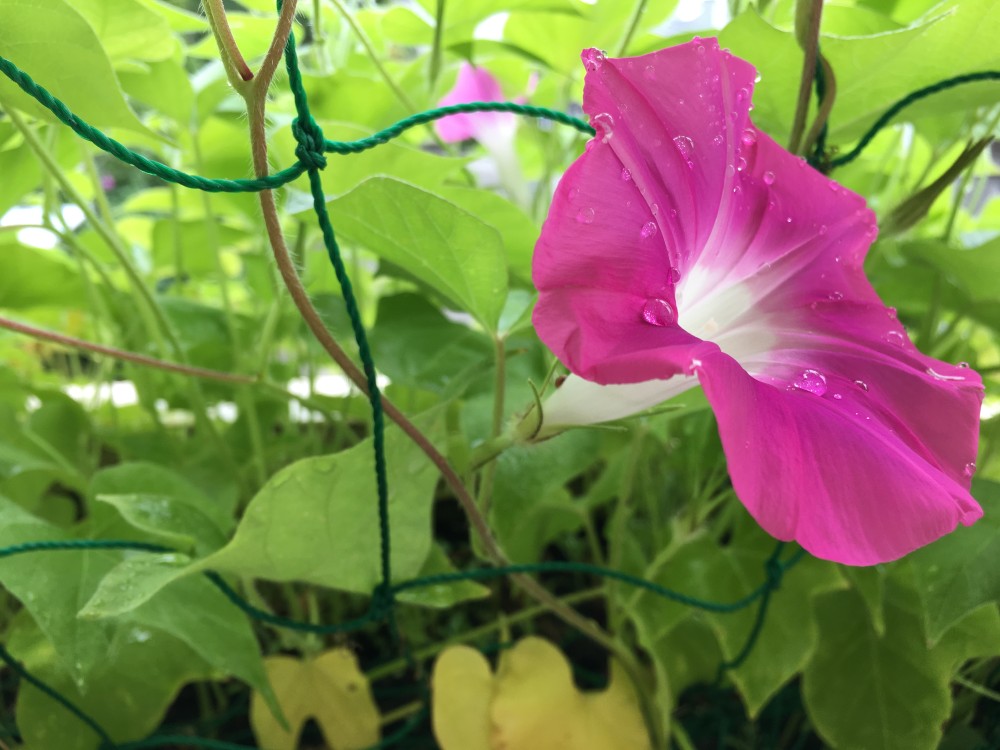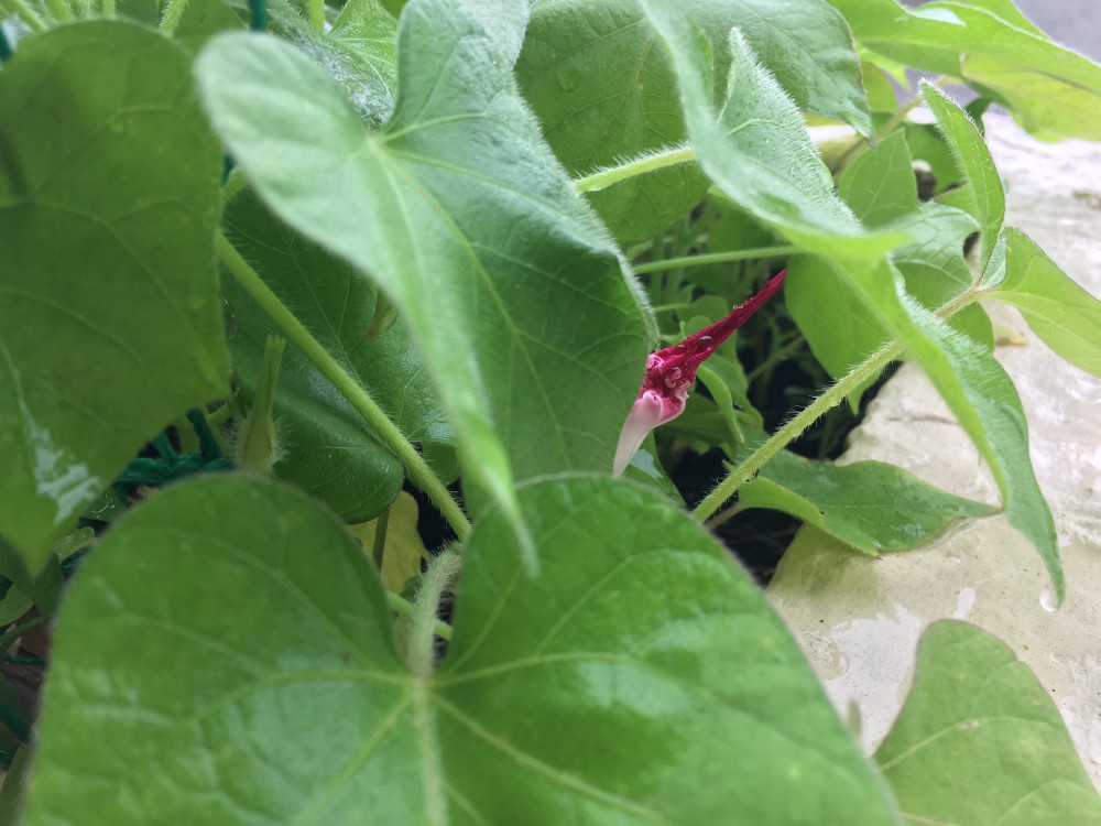 その肥料のおかげか何なのか(新しい土を足したのも要因でしょうが)、菜園の横の朝顔がデカイ。
