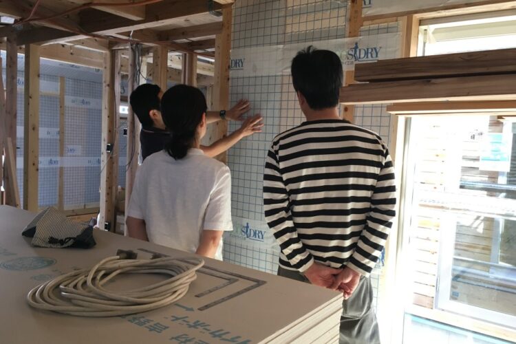 6月24日、28日、7月4日と工事監理に行きました。 24日は断熱見学会も行いましたので、2組ご見学に来られました。 この日は、大工工事、左官工事、ユニットバス……
