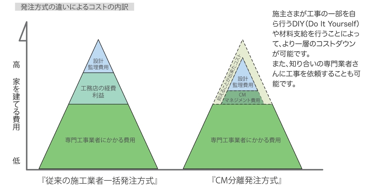 『CM分離発注』とは限りなく施主さまの気持ちになって、施主さまと共に家をつくる為の方法です。