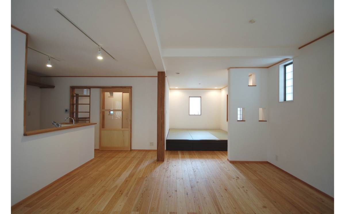 この計画は某ハウスメーカーが建てた、軽量鉄骨2階建ての建物の1階を全面改修した計画です。
