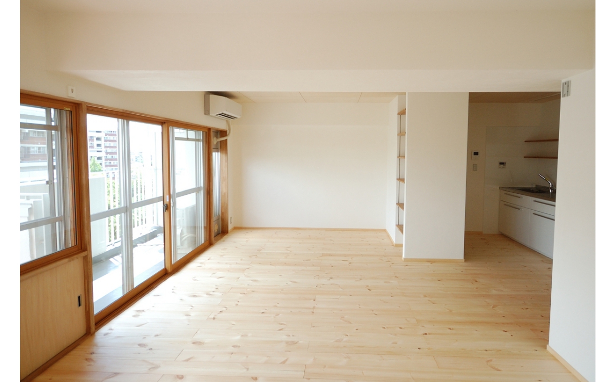 大阪府豊中市に建つ、築35年の鉄筋コンクリート造分譲マンションの1住戸を全面改修した計画です。 この計画はCM分離発注方式(オープンシステム)を採用して改修工事を行いました。工事に関わりのある工種を約10工種に分割して発注・施主さまと契約を結びました。