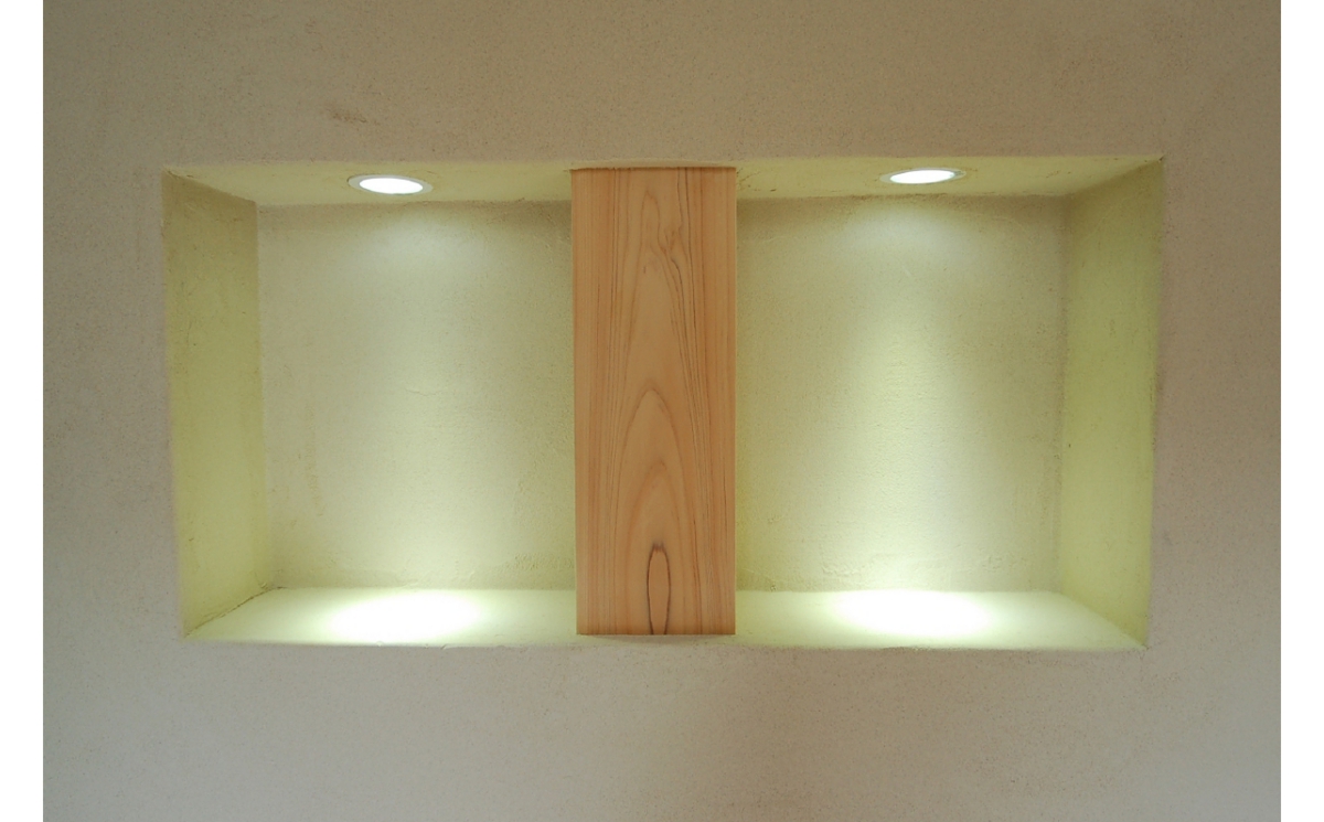 断熱材には優れた断熱性能・調湿性能をもつセルロースファイバーを採用し、仕上げ材料には、こちらも調湿性能に優れたサンゴで出来た左官材料を使用しています。
