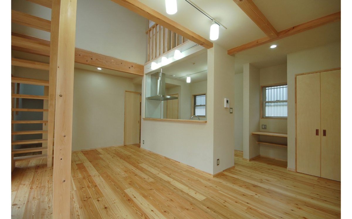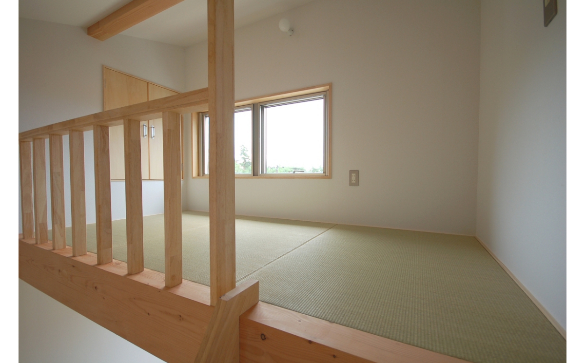 また、2階のフリールームとリビングも吹き抜けを介して、それぞれ気配を感じることが出来ます。このフリールームは出入り口を2カ所設け、将来2室に分割するなどの間取り変更に対応出来るようにしています。