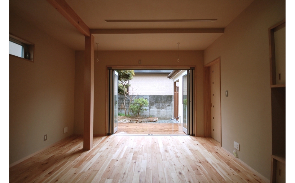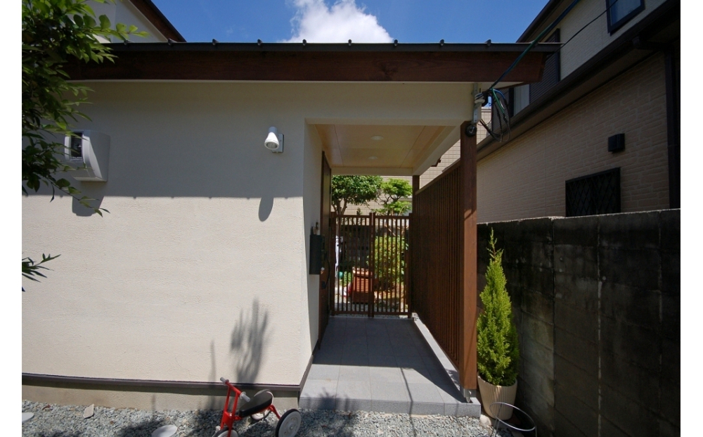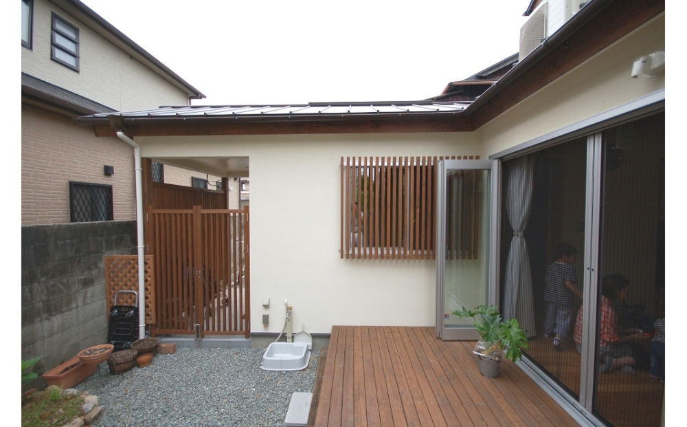 計画の要点としては隣家にお住まいの依頼主の祖母とのコミュニケーションに配慮した動線・間取りとしました。