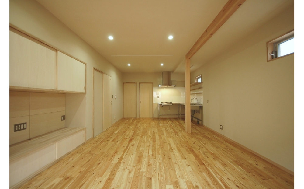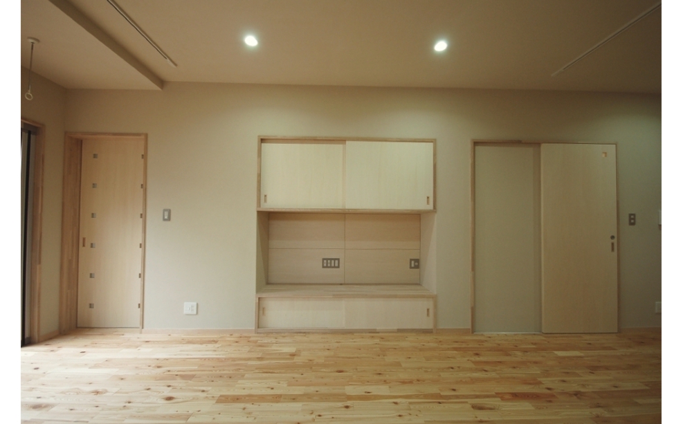 また、将来子供室となるフリースペース(1)への動線はLDKを通るようにし、子供たちとのコミュニケーションに配慮した計画としました。