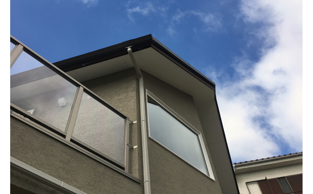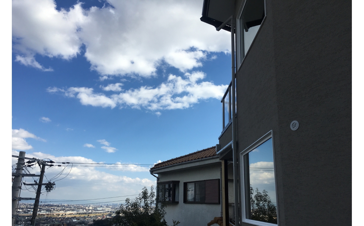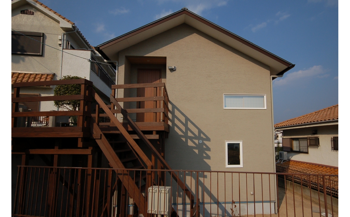 兵庫県宝塚市に建つ『スカイハウス』。この建物は道路との高低差がある敷地に建っています。